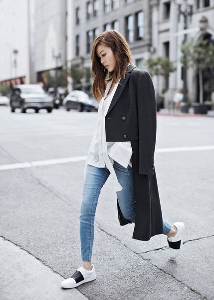 Để chiếc quần yếm nghịch ngợm trở nên yểu điệu, hút mắt hơn, cô nàng này đã diện nó cùng với item ít ngờ đến nhất: áo ren trong suốt và kết quả nhận được ưng mắt ngoài sức tưởng tượng.Một chiếc áo khoác thật "chất" là tất cả những gì tín đồ thời trang này cần để nâng tầm cho set đồ sơmi trắng - quần jeans đơn giản của mình. Đôi giày sneaker lạ mắt là lựa chọn hoàn hảo để hoàn thiện set đồ.
